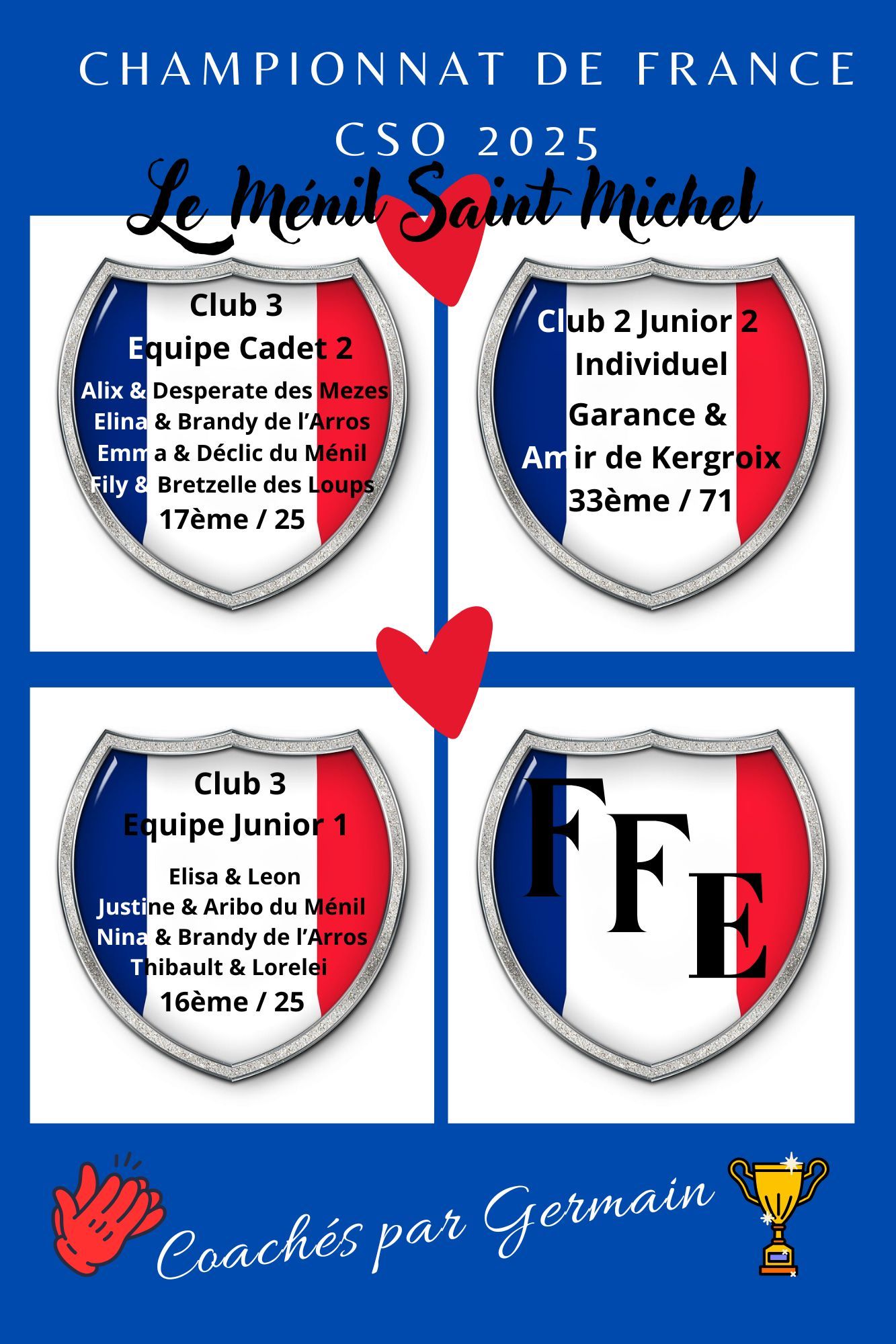 Cavaliers du club: avantage tarifaire sur une carte de 4 stages d'une journée (utilisable toute l'année jusqu'en juin 2026, règlement en plusieurs fois), plus d'infos au bureau.